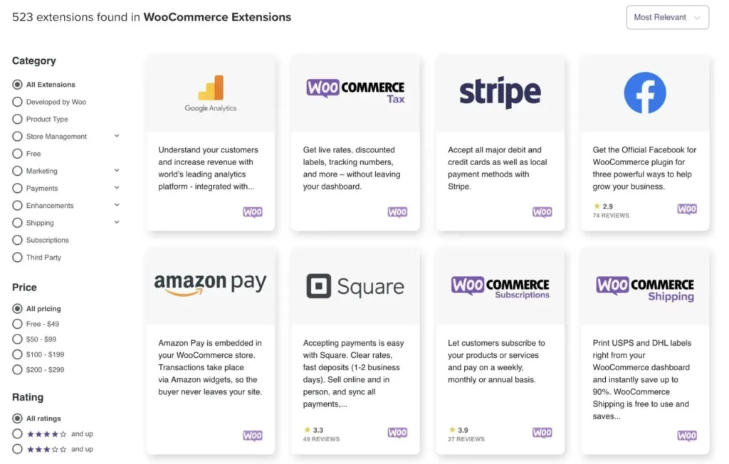 Từ marketing, quản lý vận chuyển, đến thống kê doanh thu – WooCommerce có hàng ngàn extensions miễn phí và trả phí để mở rộng tính năng cho cửa hàng của bạn.